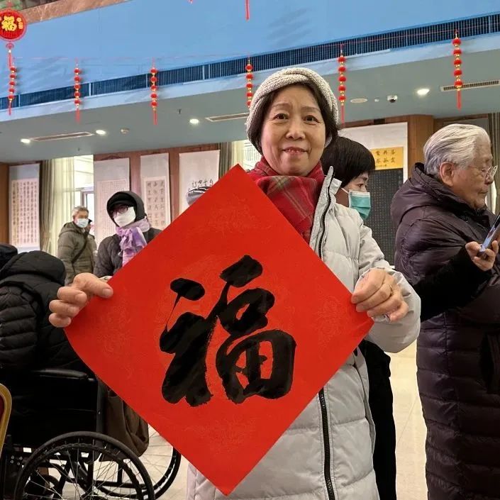 燕達(dá)在住長輩饒孝材2年前入住養(yǎng)護(hù)中心后,就加入老年大學(xué)成為了書法課的學(xué)員。饒奶奶從零基礎(chǔ)開始學(xué)習(xí)書法,每天按時(shí)按點(diǎn)地上書法課,課上認(rèn)真聽講,課后積極完成老師布置的作業(yè),兩年多時(shí)間的堅(jiān)持與努力,讓她進(jìn)步飛快,常被老師表揚(yáng)。饒奶奶說:“在燕達(dá)養(yǎng)護(hù)中心,我們生活方便,老有所學(xué)、老有所樂,晚年過得幸福充實(shí),我很喜歡現(xiàn)在的養(yǎng)老生活。在我的介紹下,我的朋友和同學(xué)也搬來了燕達(dá),大家常聚在一起聊天,特別開心,關(guān)系也更加親密了。”今天,饒奶奶在活動(dòng)現(xiàn)場親手書寫了一個(gè)個(gè)飽含祝福的“福”字,并打算將這些美好祝福送給燕達(dá)的好友們,與他們共同分享新春佳節(jié)的開心與喜悅。