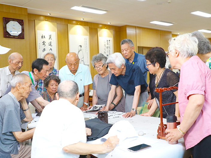 老年大學根據長者不同的興趣愛好開設了語言、書畫、舞蹈、器樂、聲樂、手工、數碼、健身共八大系40余門課程;還定期舉辦電影放映、健康養生講座、各類展覽、書法筆會、交誼舞會、集體生日會、節慶聯歡會等繽紛活動;成立燕達金色年華合唱團、燕達銀齡風采模特隊、燕達愛晚書畫社、燕達青衣社、燕韻樂坊等多個文娛社團,并定期組織社團活動和黨建活動等,讓長者真正實現“老有所學”“老有所樂”“老有所為”。
